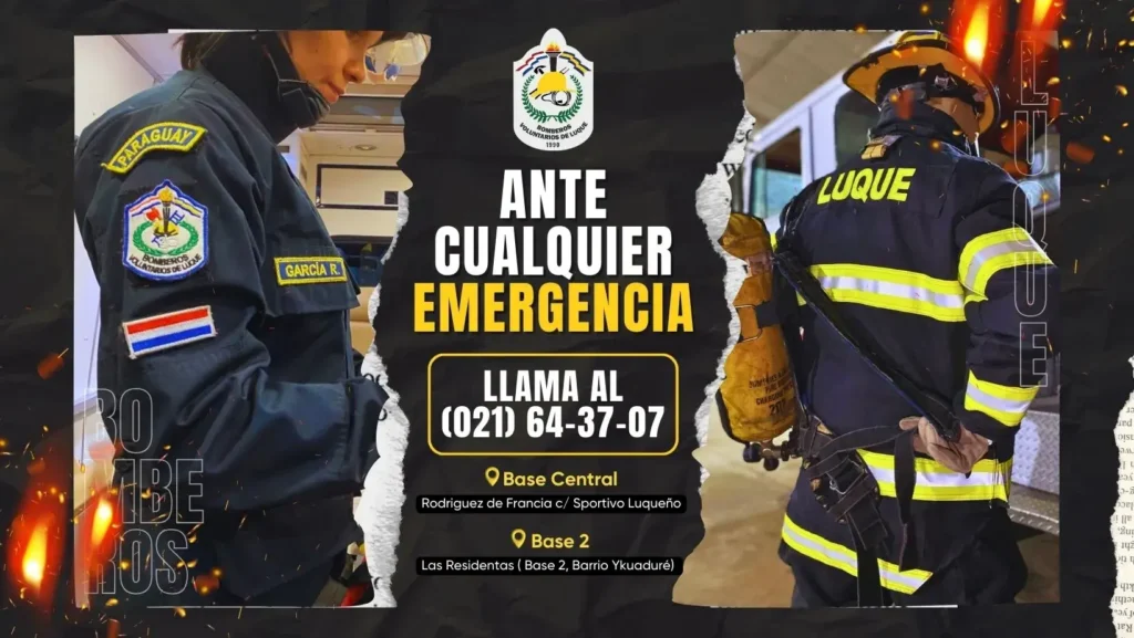 Somos el Cuerpo de Bomberos Voluntarios de Luque (CBVL), con más de 100 voluntarios y dos estaciones operativas para dar respuesta rápida y efectiva ante incendios, accidentes de tránsito y otras emergencias.
