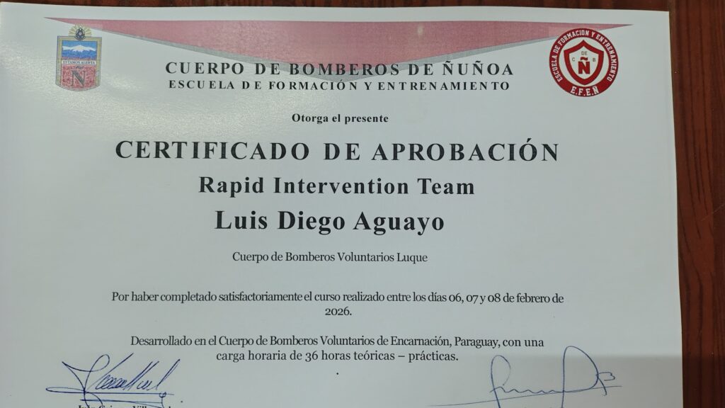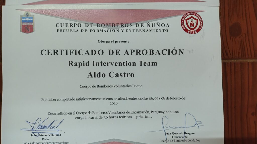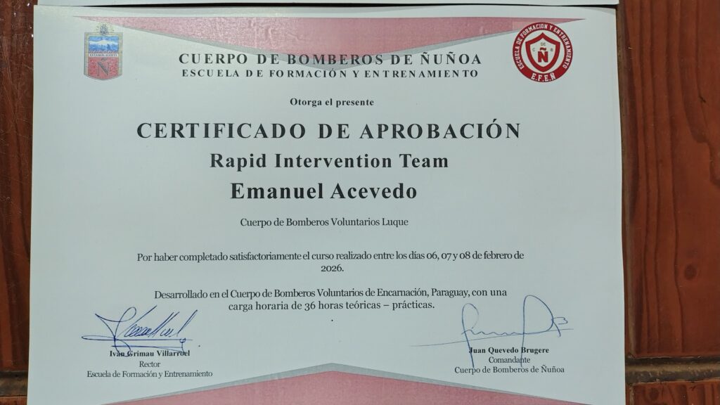 ​Agradecemos profundamente a los Bomberos Voluntarios de Encarnación, cuya impecable organización permitió que esta capacitación internacional fuera una realidad en suelo paraguayo, fortaleciendo los lazos de hermandad y profesionalismo entre nuestros departamentos.